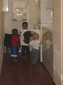 Migo lærer Uffe og Asis, hvordan man vasker tøj