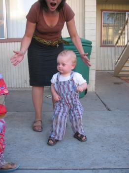 En af de allerførste gange Uffe står selv - se bare morens begejstring
